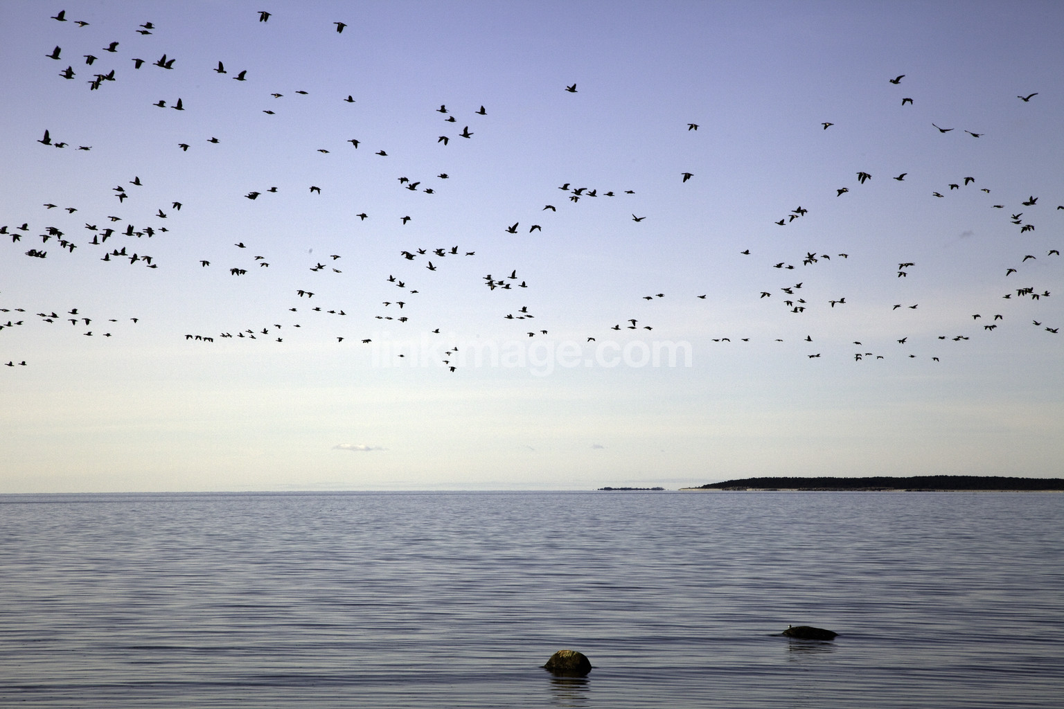 sea, water, horizon, birds, nature, geese, spring, fly, sky, light