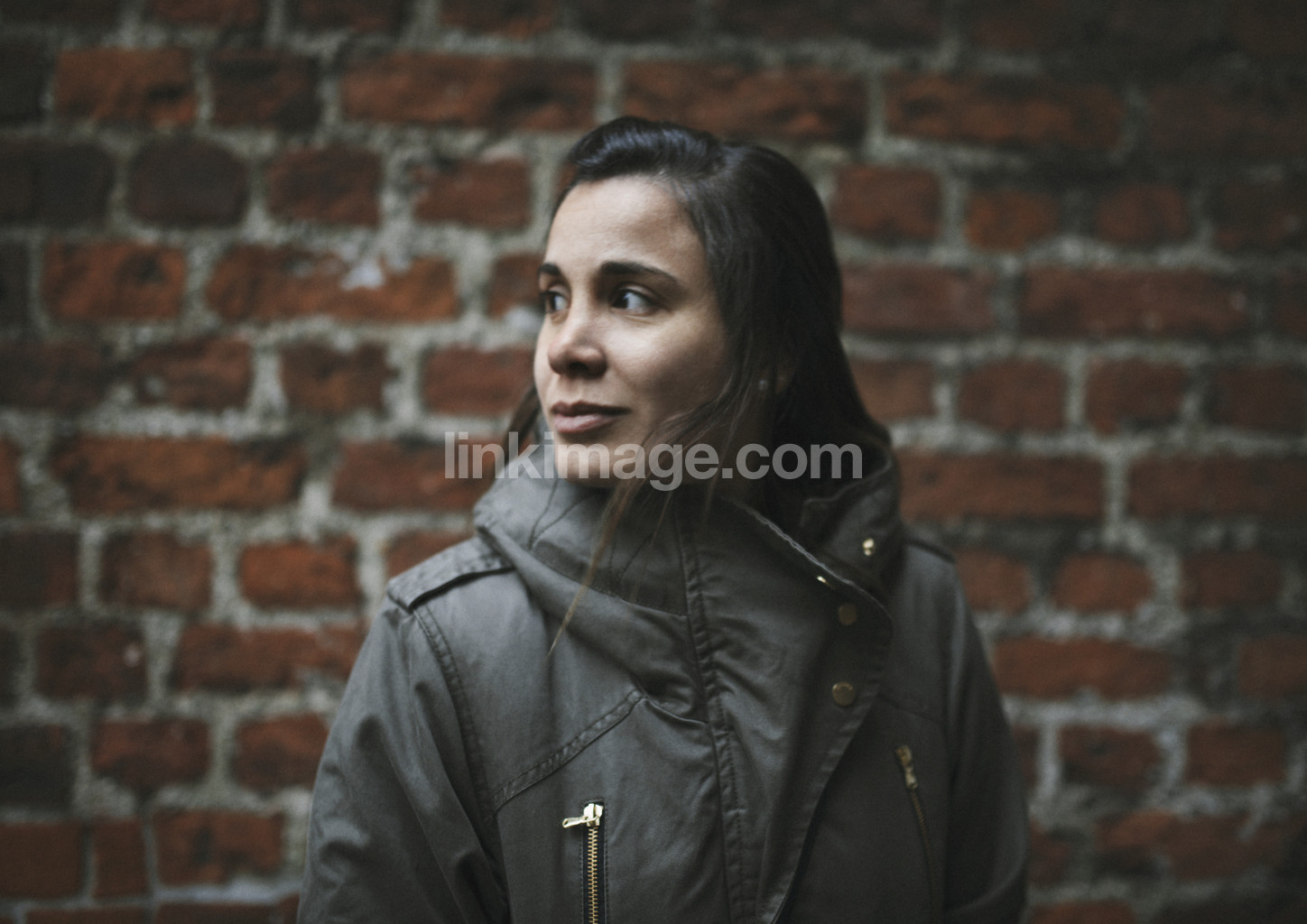 - argentines, argentine, consider, gaze, brunette, distracted, jacket, cold, woman, quiet, wall, curiosity, portrait, city, urban, hispanic, applicant, brick, watch, viewing, beautiful, winter