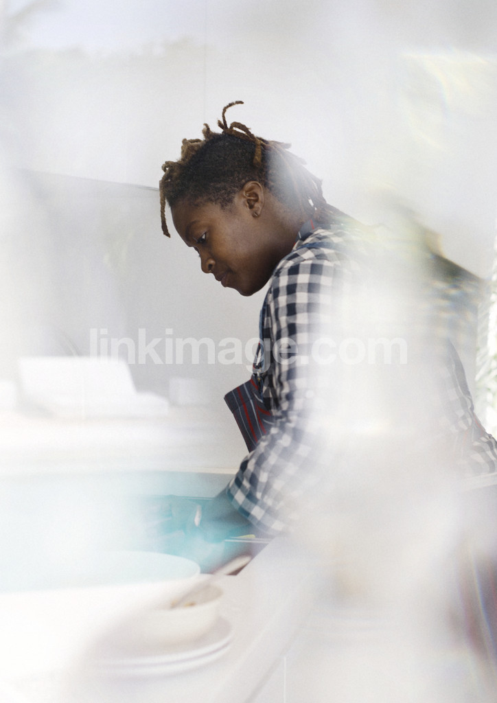 work, catering, head, disk, focused, disguises, concentrated, woman, kitchen, light, food, portrait, trip, serious, black, hot, white