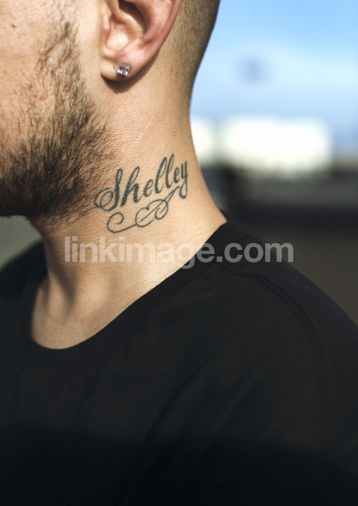 - america, different, face, blue, letters, alone, neck, sky, cocky, love, los, angeles, one, fashion, brave, mysterious, name, curiosity, unshaven, portrait, serious, beard, summer, city, strong, black, difficult to interpret, t-shirt, tattoo, tough, font, ear, earring