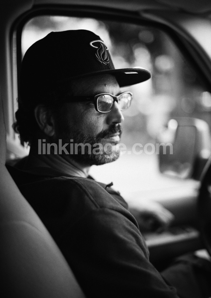 - american, car, distracted, absent, ponder, thoughtful, glasses, cap, concentrated, cuban, run, one, unshaved, portrait, trip, sit, sitting, beard, black and white, watch, viewing, wait, waiting, go, driving