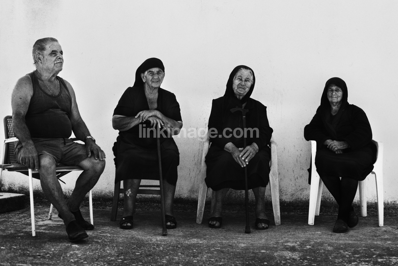 - old, happy, greek, greece, grizzled, cute, headscarf, contact, woman, one, smile, portrait, wrinkles, veil, black, dressed in black, black and white, toothless, way, widow, widow, honest, honesty, eye contact, proud, kepp, stomach, shorts, dress, set-up, concentrated, wall, chair