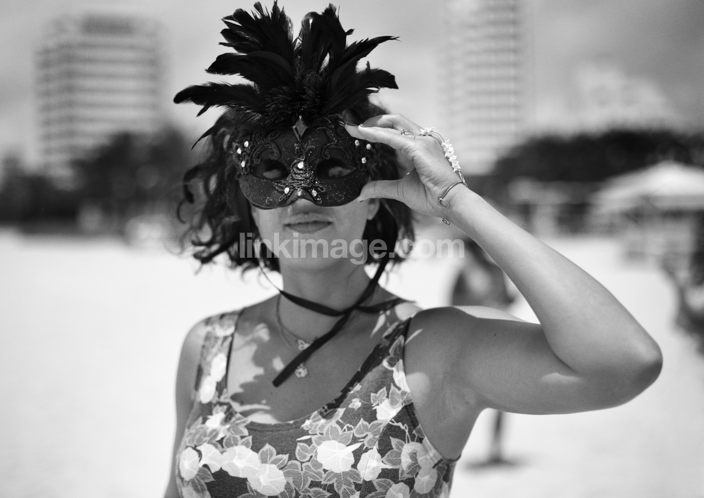 - female, mask, hidden, hide, beach, sand, smyrke, spring, shy, masquerade, play, anonymous, expressionless