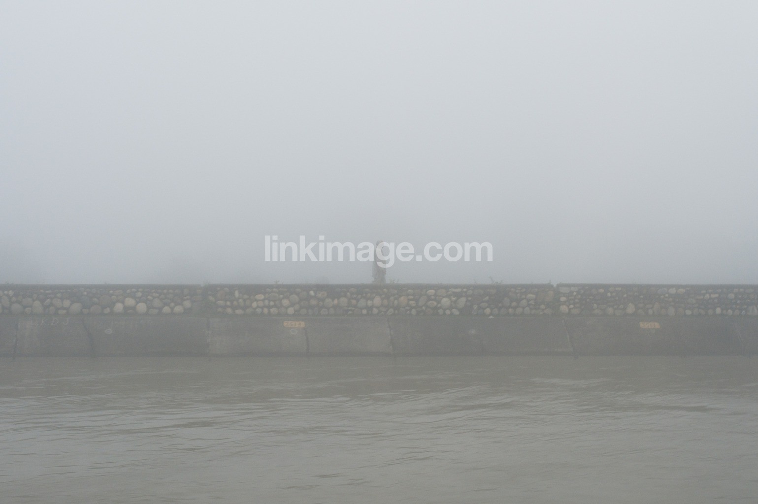 - hazy, gray, river, water, wall, time, bridge, stone, one, alone, go, pedestrian, small, mysterious, destination, case