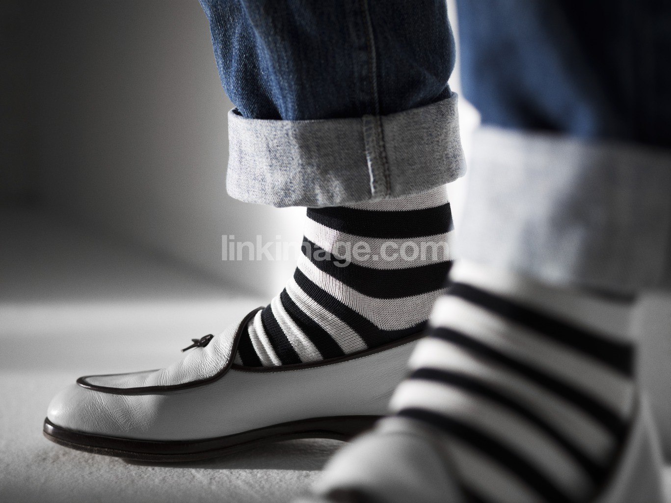 - fashion, shoes, striped socks, rolled up jeans, white shoes, one