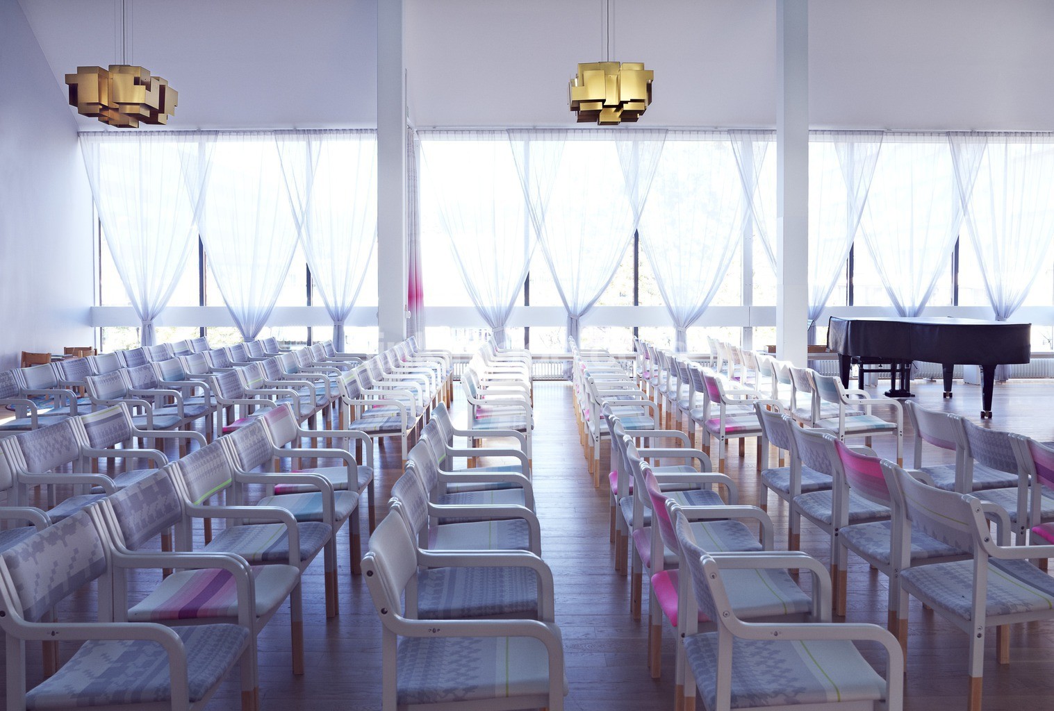 - kryrka, assembly local, rows of seats, bright, wing, undercover, interior, religion, collection, chairs