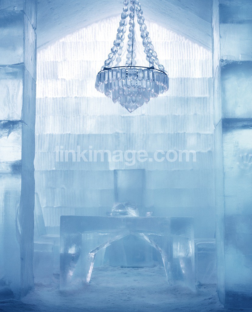 - ice, hotel, snow, cooling, cold, jukkasjärvi, kiruna, crystal chandelier, pillar, sal, leisure and adventure, winter, modelreleased, color, tourism