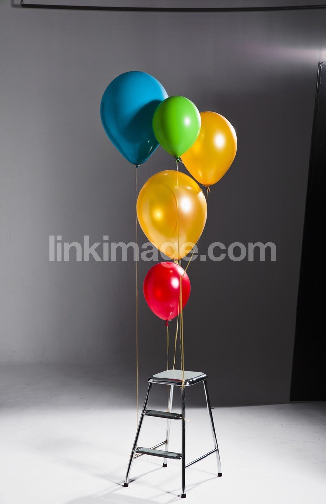 - balloon, balloons, helium, colorful, colors, different, size, party, joy, celebrate, studio, photo studio, stool, step, alone, model released