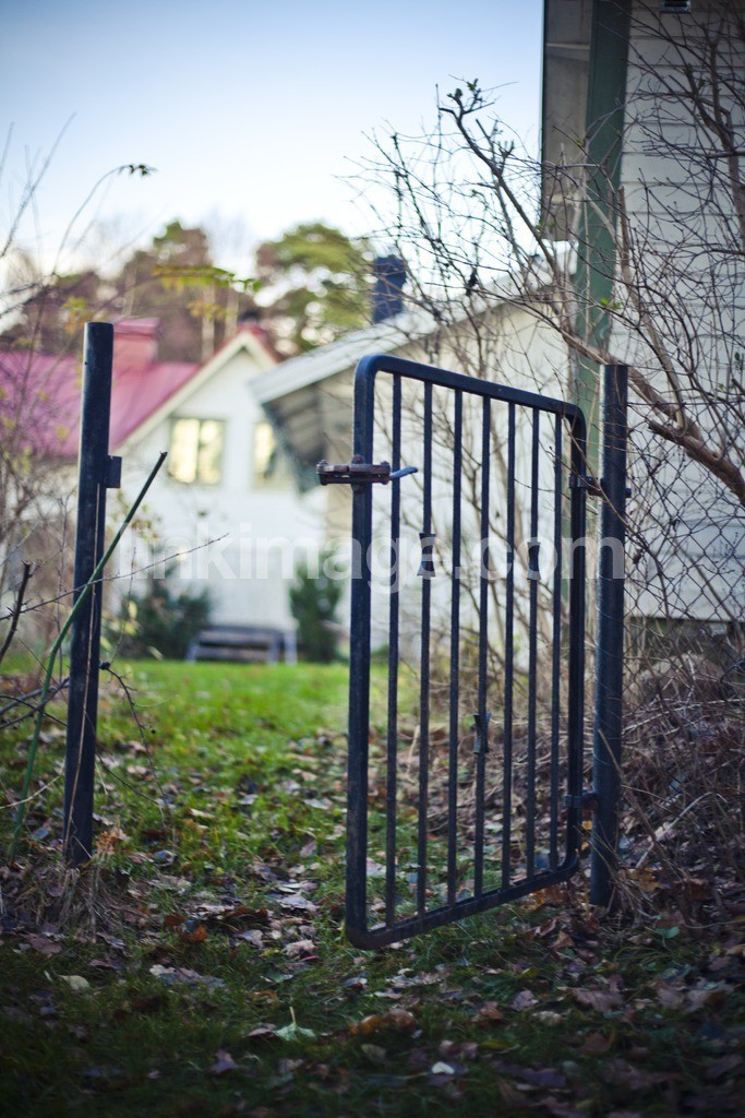 gate, garden, fence, handle, fall, lawn, leaves, villa, area, cast iron, open