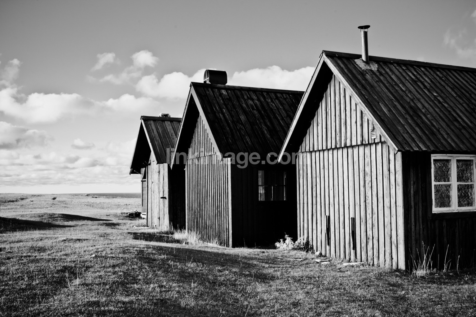 - sweden, gotland, fish house, helgumannens, fishing village, tar, tarred, bod, träbod, heaven, cloud, sea, skyline, fall, bw, black and white, cottage, homes, pebble beach