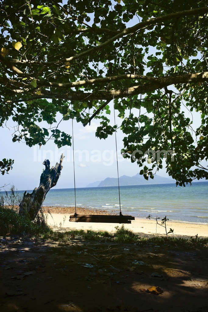 - vacation, swing, paradise, beach, green, shade, view, wooden swing, hembygge, peacefully, tree swing, a, destiny, alone, stump, sea, sea views, tropics, greenery, ocean, resting place