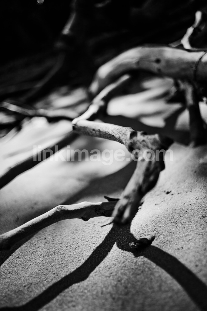 - beach, shade, light, shadow play, natu, wood, woods, branch, twig, winding, jetsam, washed up, black and white, form, tree, dead