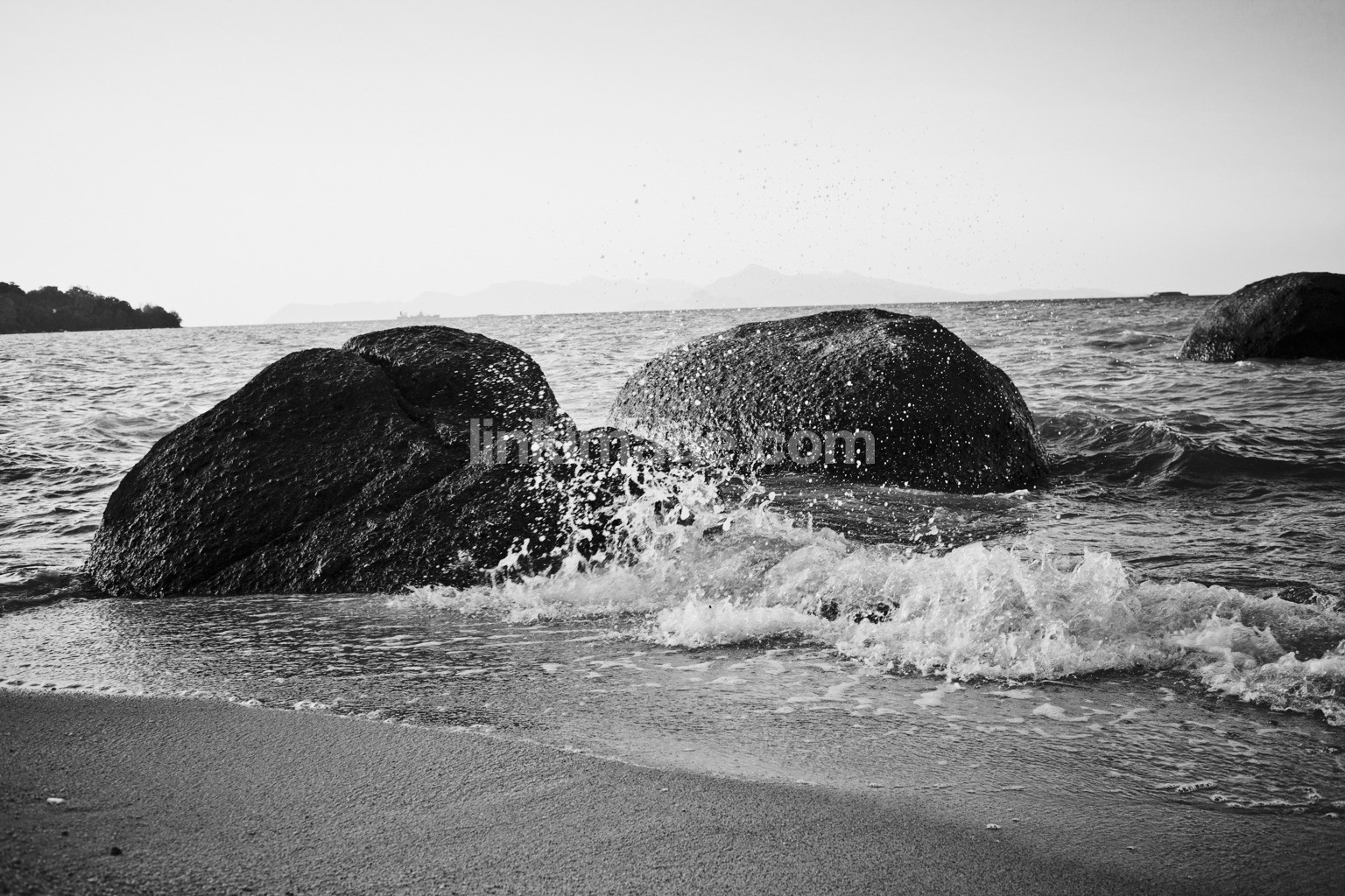 - bw, black and white, stone, cut, beach, sand, water, sea, form, balance, water's edge, sharp