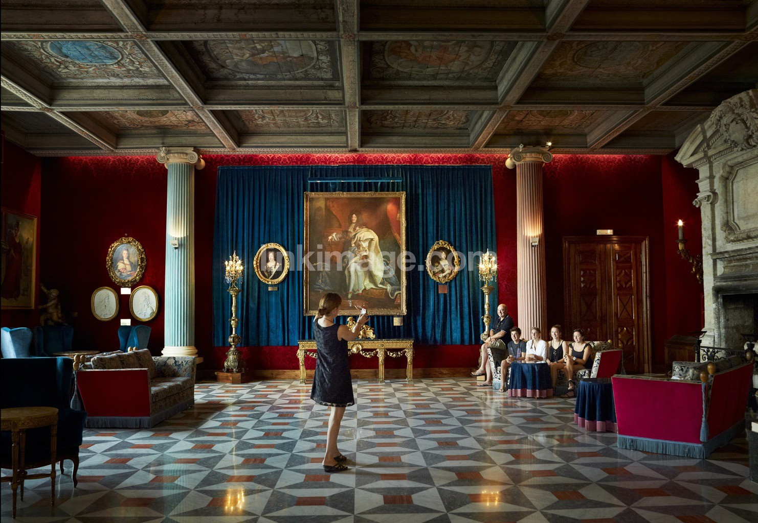 - le negresco, tourists, visitors, photograph, sal, pillar, decorations, ceiling paintings, marble floors, art, paintings, story