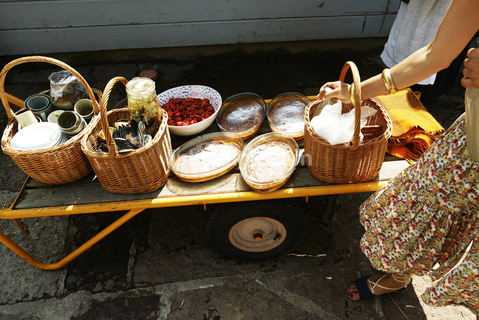 - dessert, refreshments, strawberries, midsummer, cheesecake, china, summer, cart