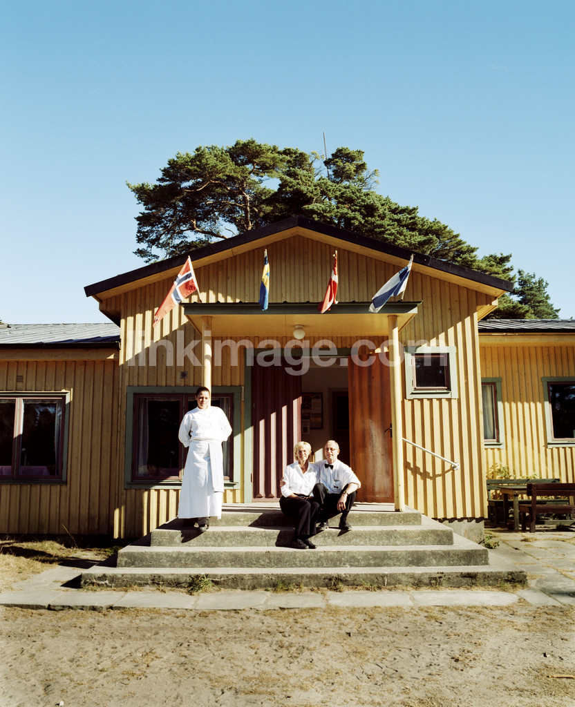 - Staff in front of the entrance to the guest holmhällar, vamlingbo on gotland, sweden, 2002.