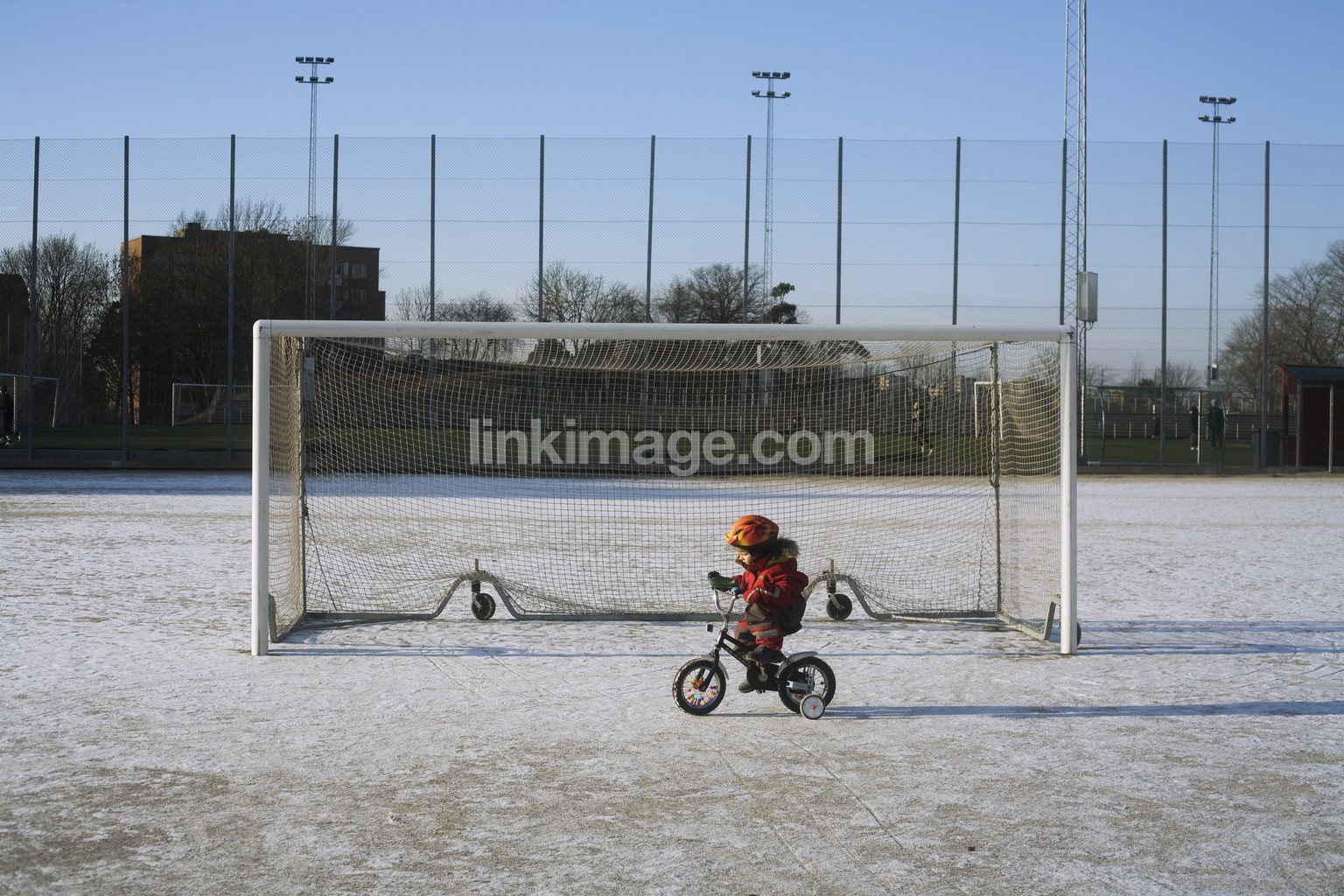 - boy, bicycle, sports stadium, playing, play, small, stockholm, kungsholmen, cold, alone, football, case