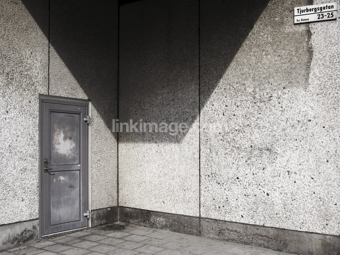 door, exterior, facade, form, graphic, graphic, gray, patina, shadow, sunlight, town, urban, wall