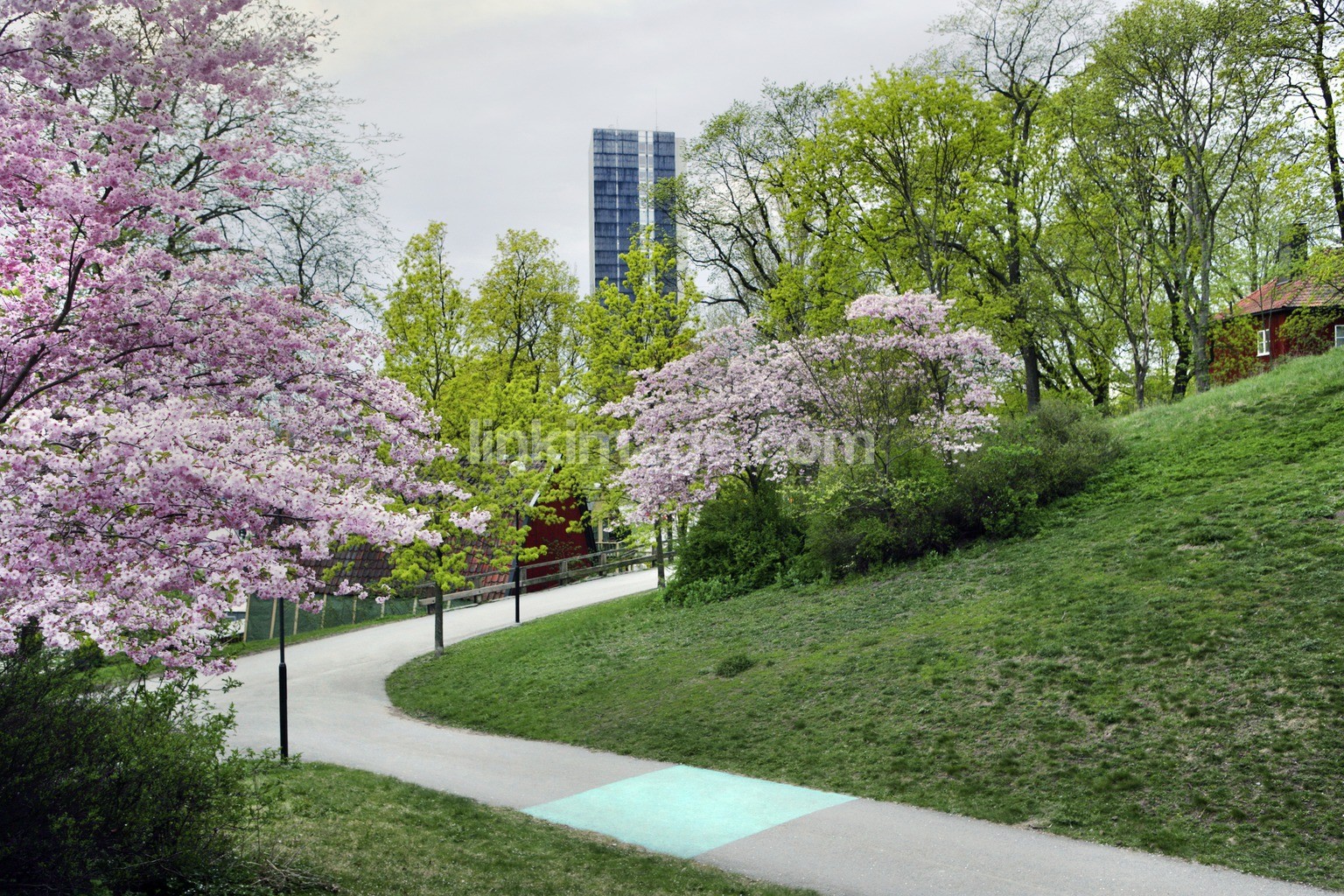 - flower, color, colorful, green, towers, cherries, cherry blossom, nature, park, pink, skyscraper, town, metropolitan, tree, urban, view, vegetation, plant, our