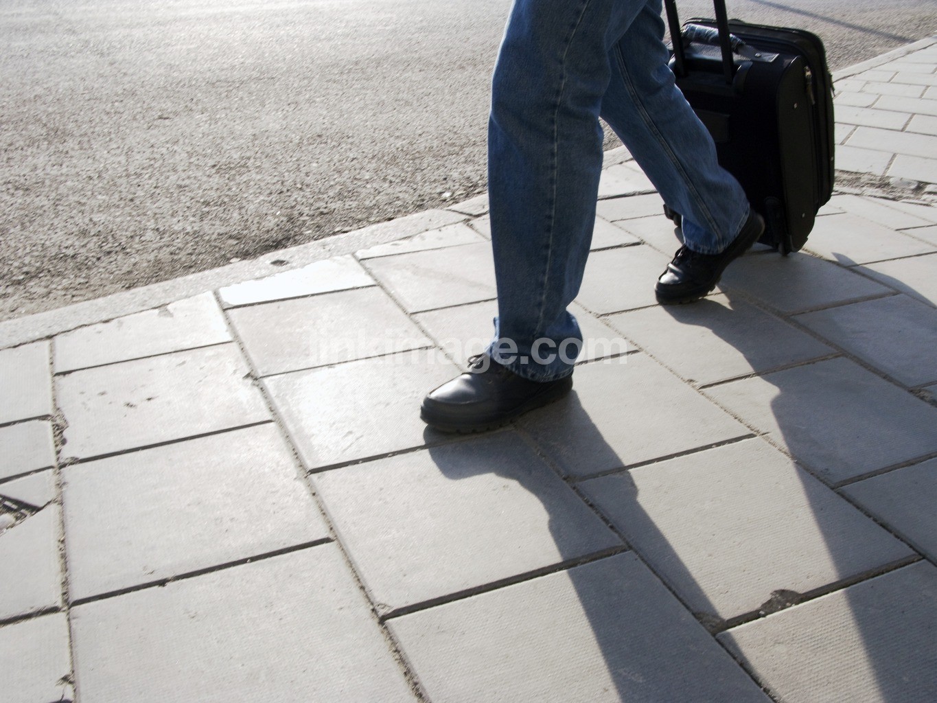 foot, street, go, hen, jeans, one, human, walk, trip, vacation, sunlight, sidewalk, tourist, urban, wander, bag