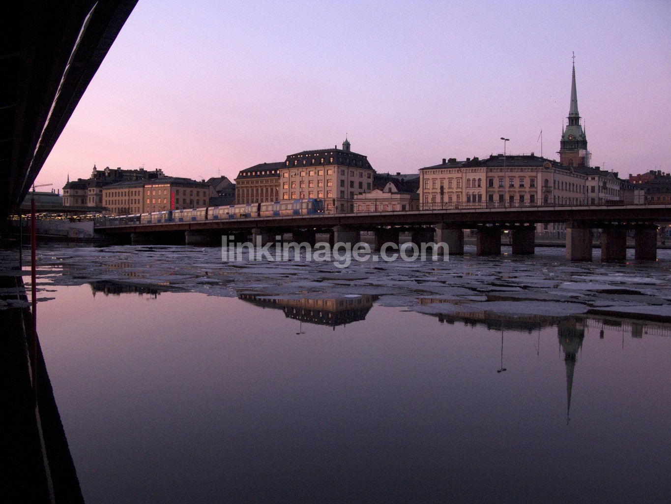 - bridge, exterior, color, old town, house, infrastructure, ice, public transport, church, scenery, environment, reflection, romance, society, lock, melt, town, stockholm, sweden, tower, subway, locality, train, urban, view, water