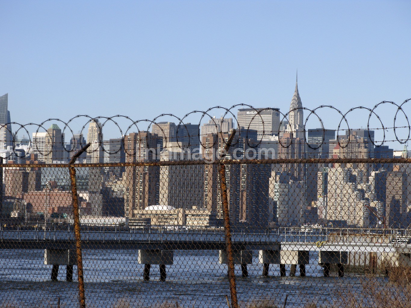 - architecture, cordoned off, concrete, exterior, prison, graphic, skyline, towers, infrastructure, scenery, manhattan, environment, new york, res, trip, society, skyscraper, sunlight, lace, town, metropolitan, fences, steel, safety, trip, wire, urban, usa, view, reed, water, our