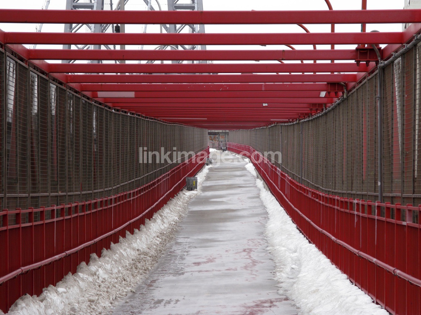 - architecture, bridge, exterior, color, colorful, graphic, time, infrastructure, cold, construction, colored, lines, metal, environment, new york, red, snow, median, symmetric, urban, usa, winter, williamsburg bridge