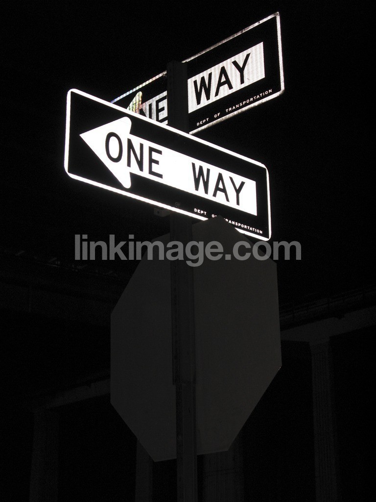 - design, one-way, exterior, form, street, graphic, dark, new york, society, sign, text, traffic, typography, urban, usa, road