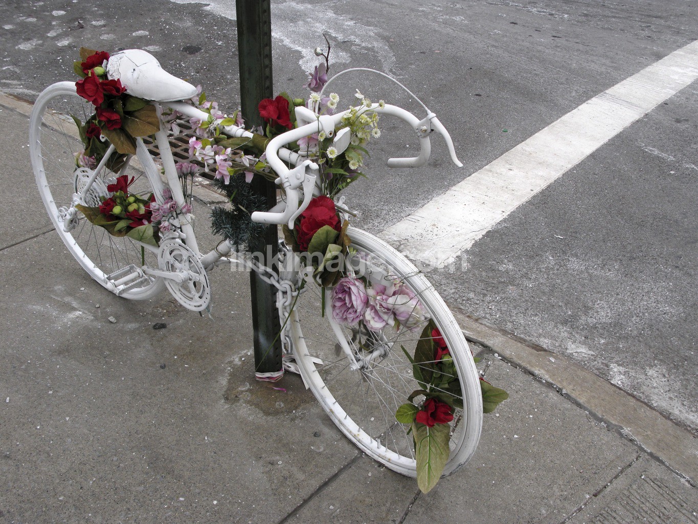- flower, bicycle, dead, street, graphic, information, culture, line, environment, memory, monuments, items, accident, mourning, ghost, subculture