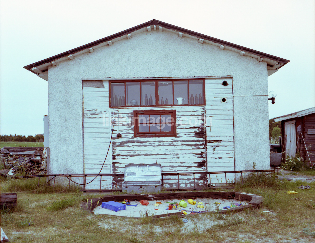 house, cottage, backyard, window, white, yard, sandbox, play, evening, façade, exterior, bk1111