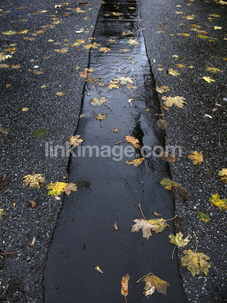 - road, asphalt, wet, exterior, color, street, graphic, yellow, content, fall, colored, mending, line, leaves, rain, splice, town, tar, urban, surface