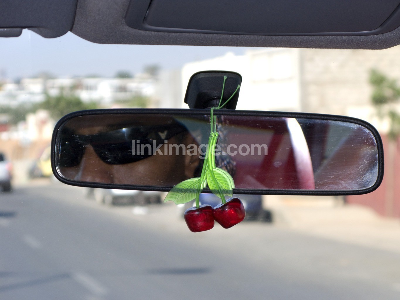- rearview mirror, car, fragrance, fresh, color, colorful, colored, cherries, reflection, red, mirror
