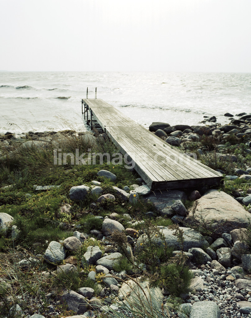 shore, bridge, wood, sea, gotland, fall