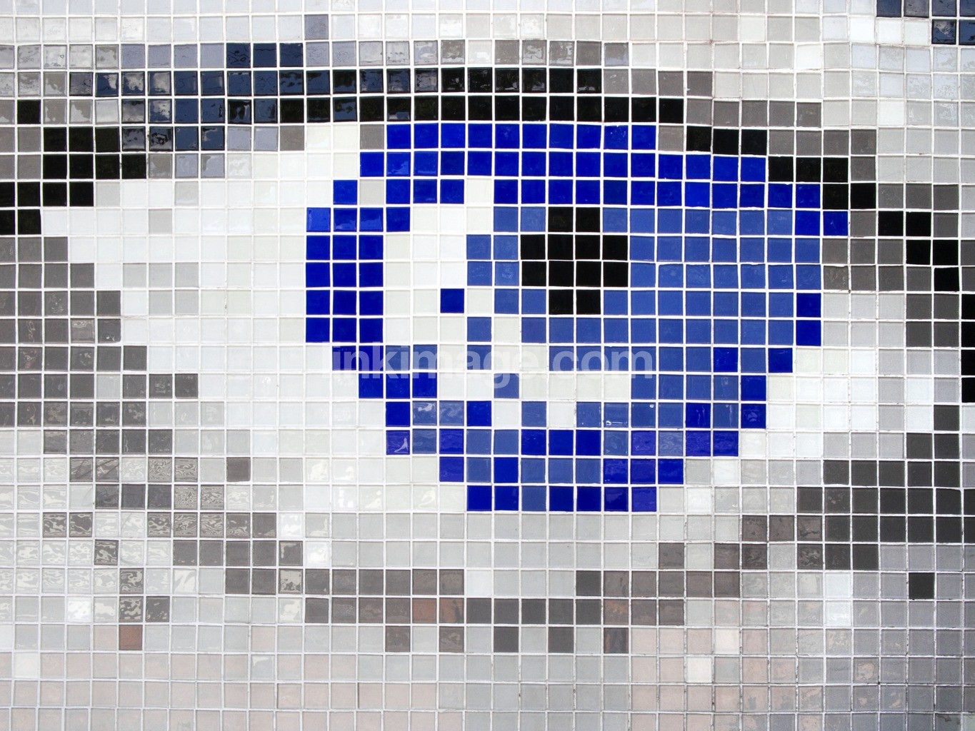 - pixel, design, exterior, square, color, colorful, graphic, illustration, colored, material, monsters, mosaics, flat, stone, wall, surface, eye