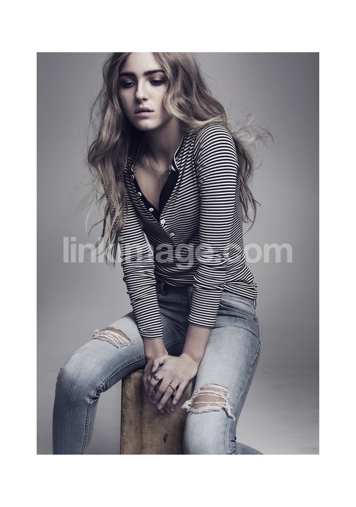 - model, girl, sit, wait, jeans, studio, model, sit