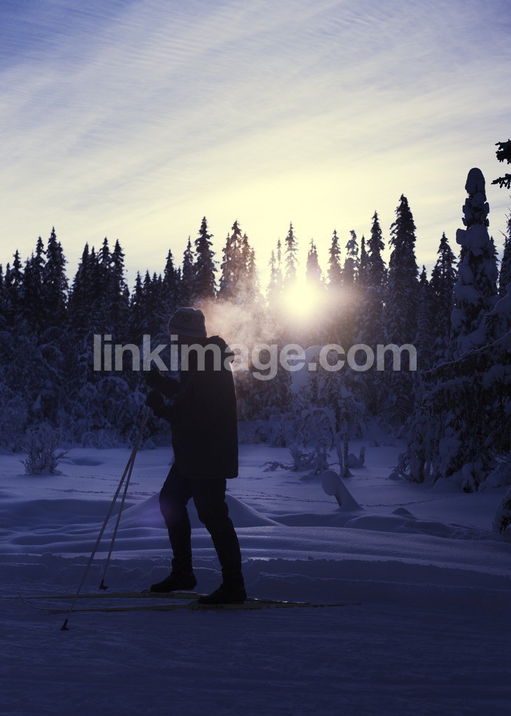 - cross country skiing, ski, cold, morning, sunrise, winter, ski trails, fir, snow, skis, cold, winter, spruce