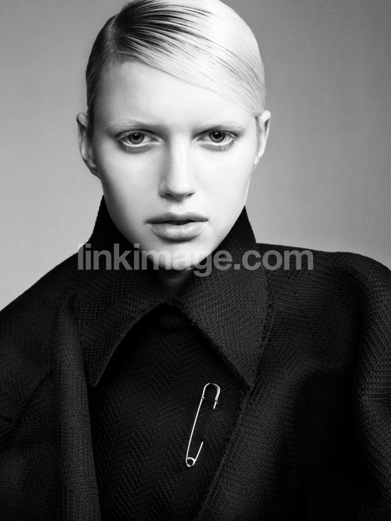 - female, skin, hair, make up, fashion, model, luster, safety pin, jacket, pattern, blonde, collar