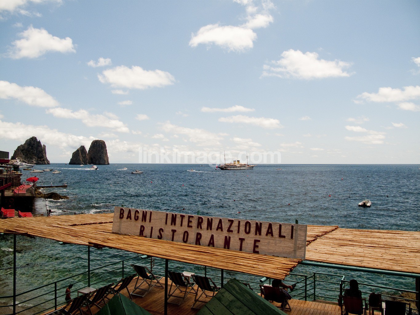 - boat, sea, heaven, cliffs, clouds, restaurant, island, islands