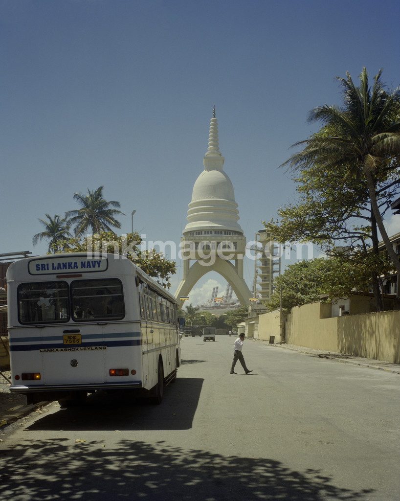 bus, building, navy, buildings, go, goes, palms, shadow, shadows, carriage, road, heat, plants