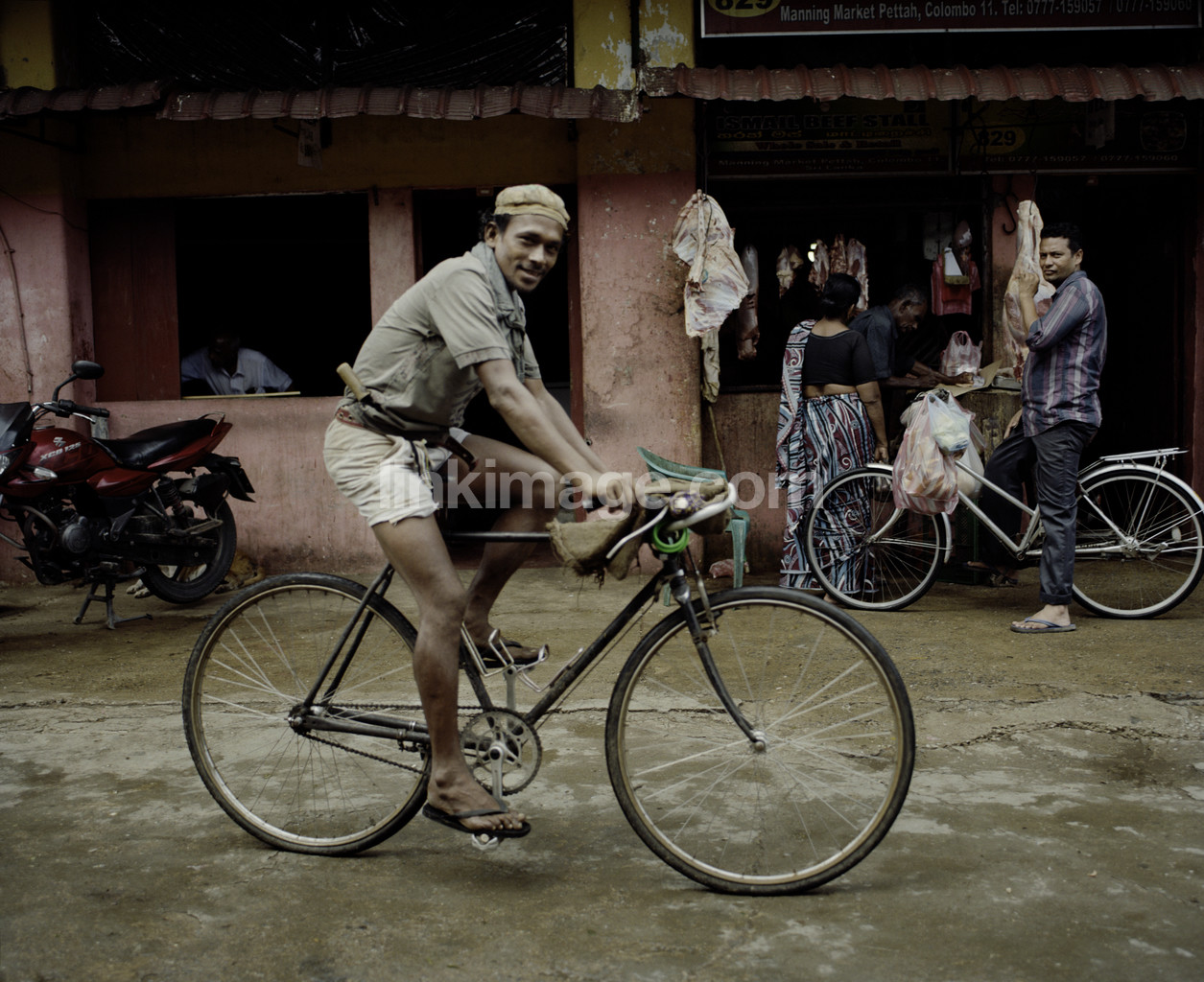 - nature, summer, cyclists, backstreet, meat, building, bike, street, house, landscape, one, moped, male, people, red, hot, heat