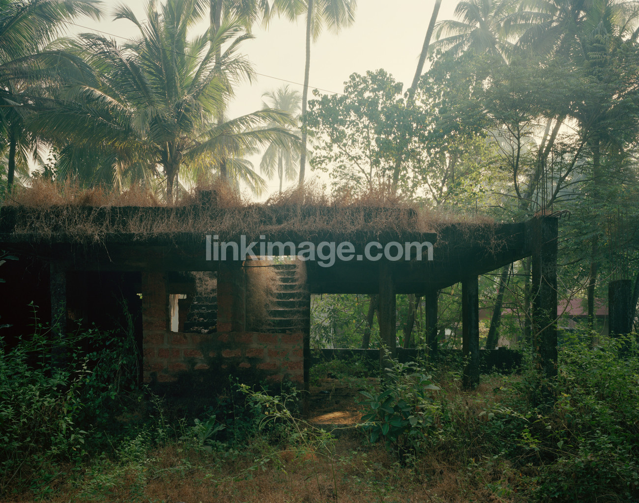 landsakp, nature, summer, house, fog, haze, ruin, palms, destiny, jungle, grass, green