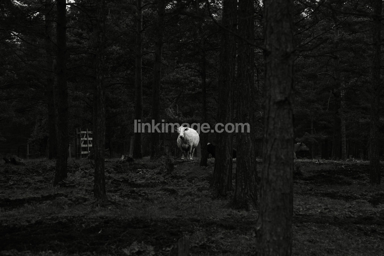 - cow, white, gaze, forest, landscape, agriculture, pine woods, meat, nature, tree, plants