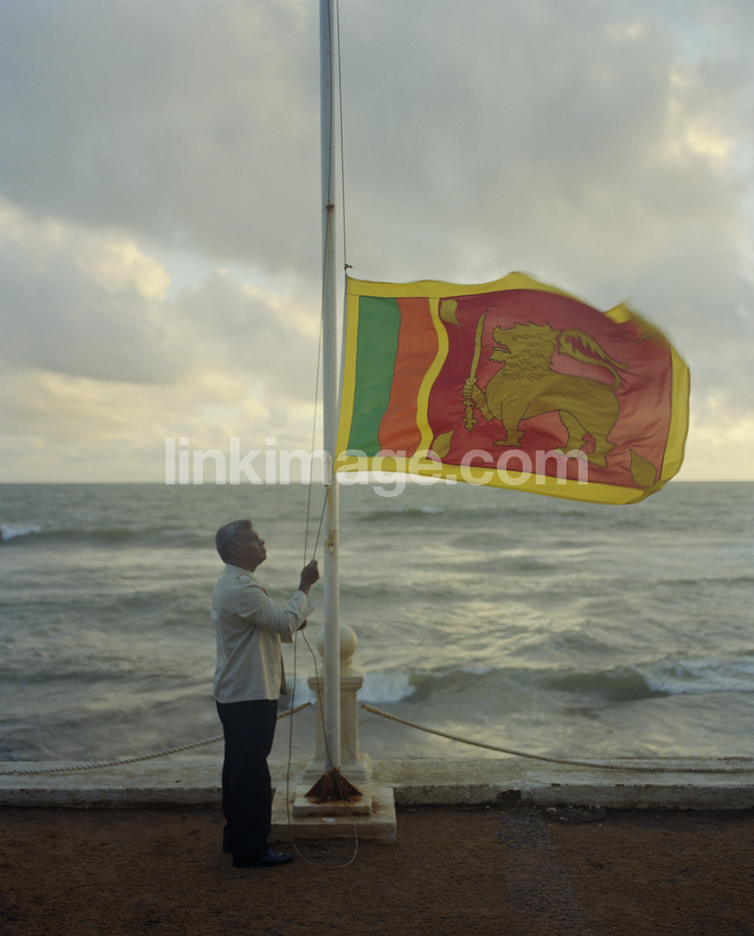 flag, flagpole, sea, sky, landscape, lion, man, person, summer, wind, winds, waves