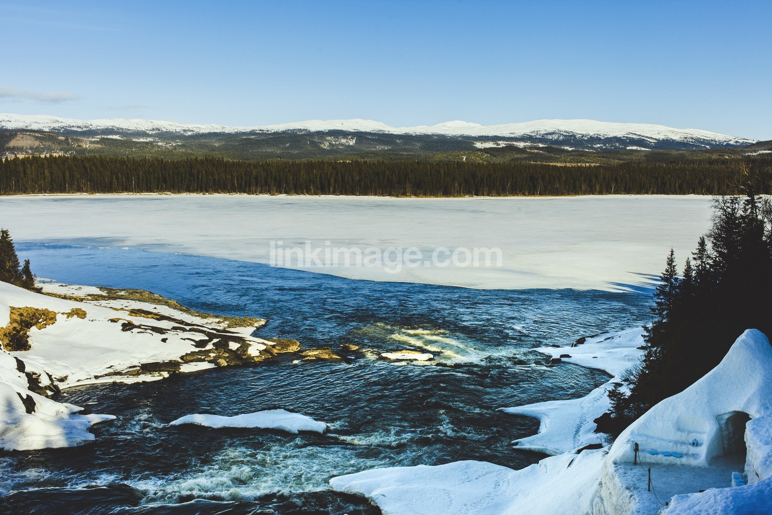 - winter, landscape, outdoor life, nature, norrland, sweden, waterfall, snow, cold, ice, forest, wilderness, excursion, frozen, mountains, view, enafors, river, rapids, chilly, below freezing, lake