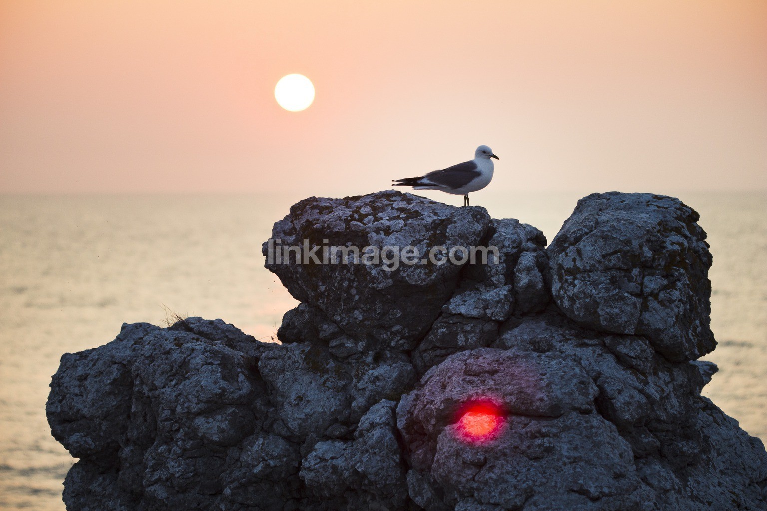 - gotland, sweden, rauk, sunset, sunshine, summer, enjoy, mindfullness, relaxed, light, pink, yellow, seagull, bird, one, alone, backlight, cut, waterfowl, horizon, holiday, stone