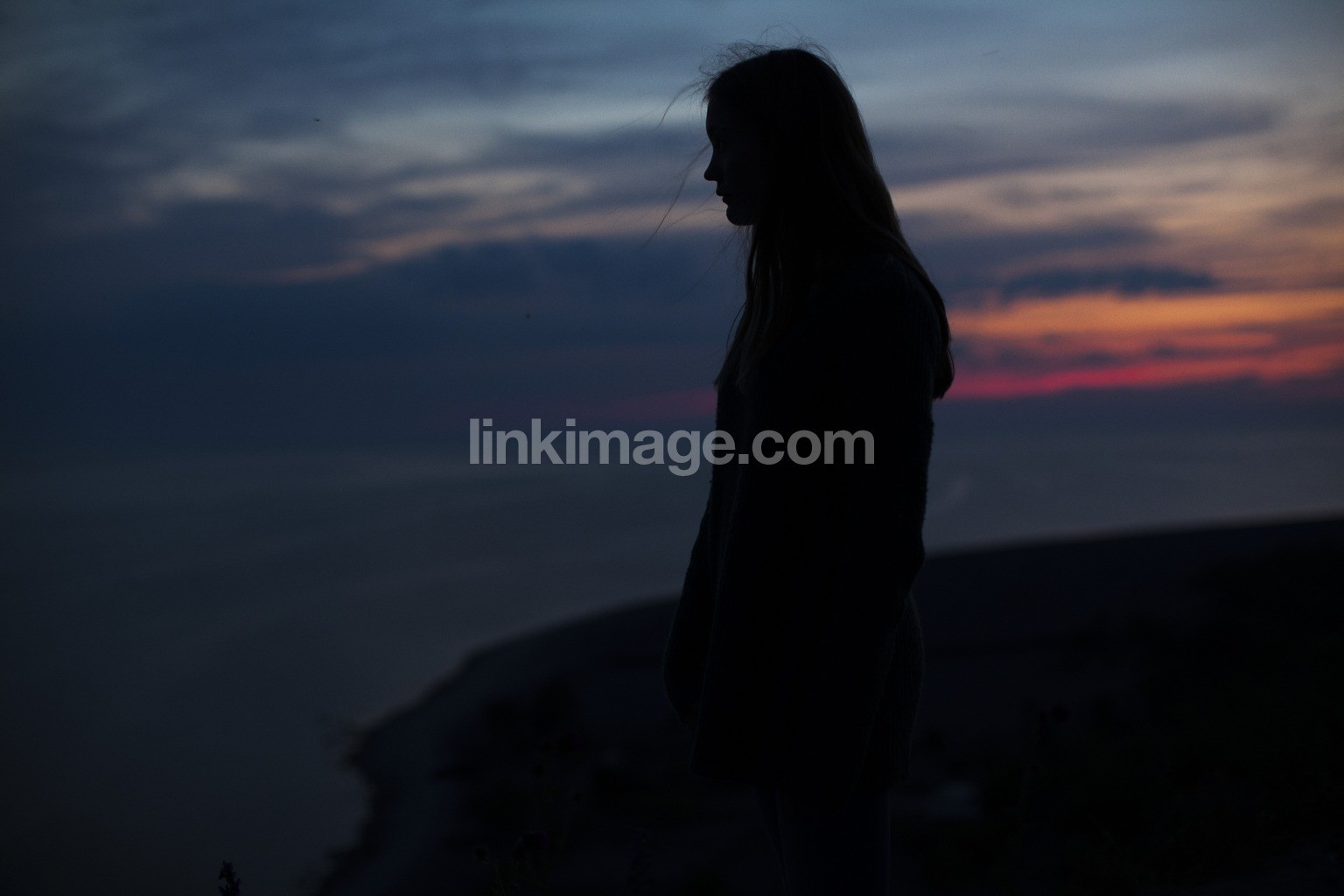 - sea, northern gotland, sunset, summer, water, baltic sea, dark, female, dusk