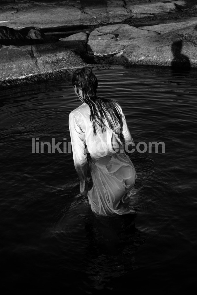 - dip, afternoon, sea, classic, cliffs, dress, female, scandinavia, archipelago, sunset, summer, black and white, sweden, girl, outdoor, water, contrasts, shadow