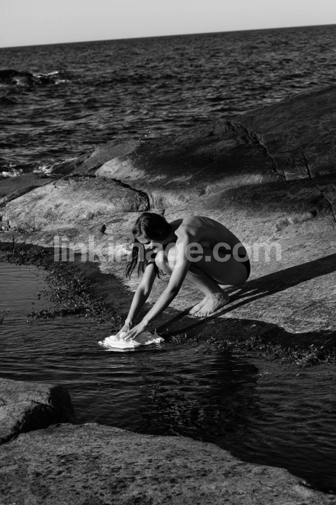 - brunette, bent, day, sea, horizon, crouch, cliffs, female, mature, scandinavia, archipelago, rinse, sun, summer, black and white, girl, topless, wash, outdoor, beautiful, sky, contrasts, nature, stones, water