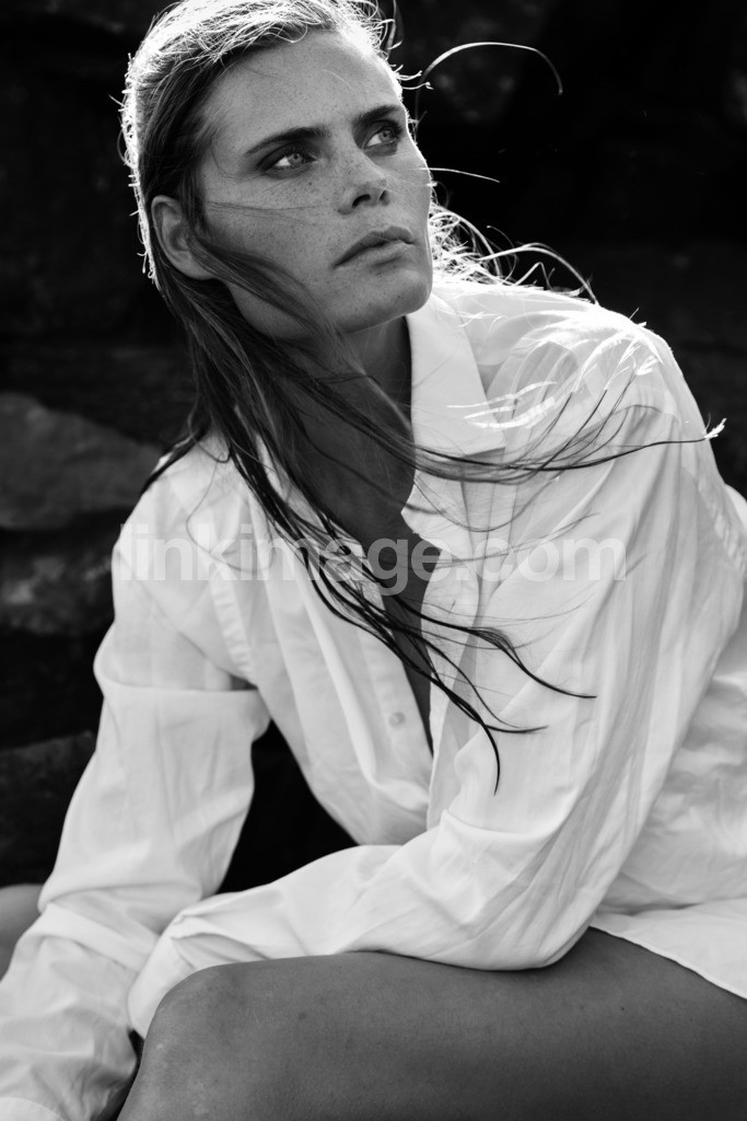- look, brunette, day, future, freckled, cliffs, female, mature, portrait, scandinavia, shirt, archipelago, summer, black and white, girl, outdoor, beautiful, wind, blouse, contrasts