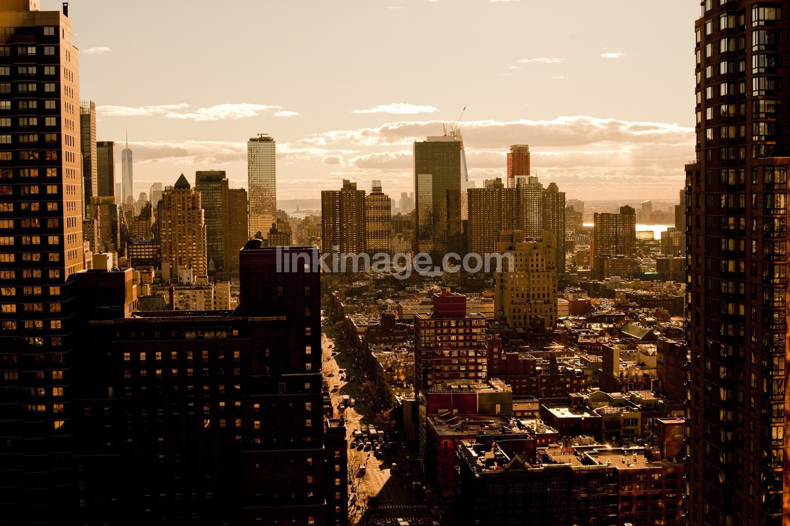 buildings, sky, autumn, manhattan, cloud, new york, orange, skyline, dusk, sunlight, sunset, city
